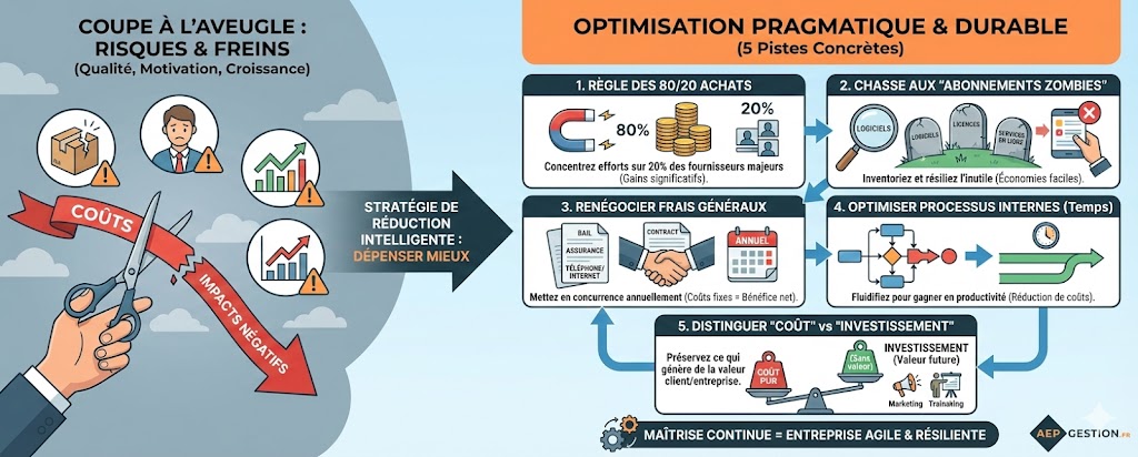 Avant de couper une dépense, posez-vous la bonne question : est-ce un coût pur ou un investissement ? Réduire le budget marketing peut sembler une économie à court terme, mais peut vous coûter cher en chiffre d’affaires futur. De même, rogner sur la formation de vos équipes ou la maintenance de votre matériel est souvent un mauvais calcul. La meilleure stratégie est de réduire les coûts qui ne génèrent pas de valeur pour le client ou pour l’entreprise.